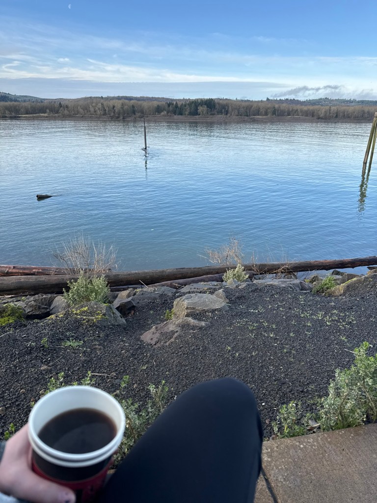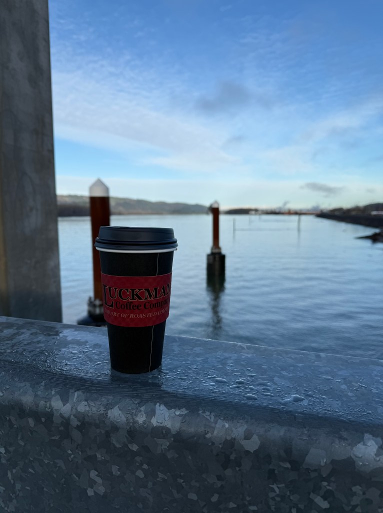 The Mountain Timber Market stood, magnificent and peaceful, right on the bank, nearly completely empty on that Friday morning. Only the Luckman Coffee Shop welcomed customers before 11am, providing a warm and aromatic reprieve from the brisk outdoors. A few pleasant moments’ detour yielded a hot cup of drip coffee, which could be enjoyed from the outdoor seating area overlooking the Columbia River, or on the go in the direction of the Kalama Interpretive Center.